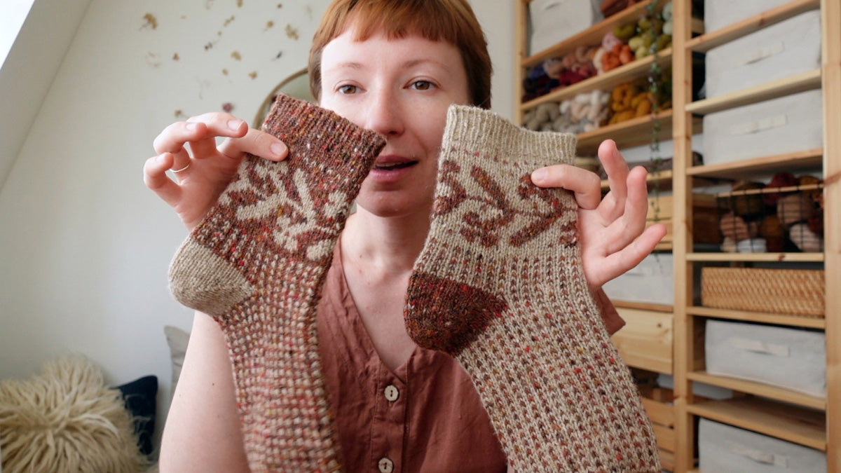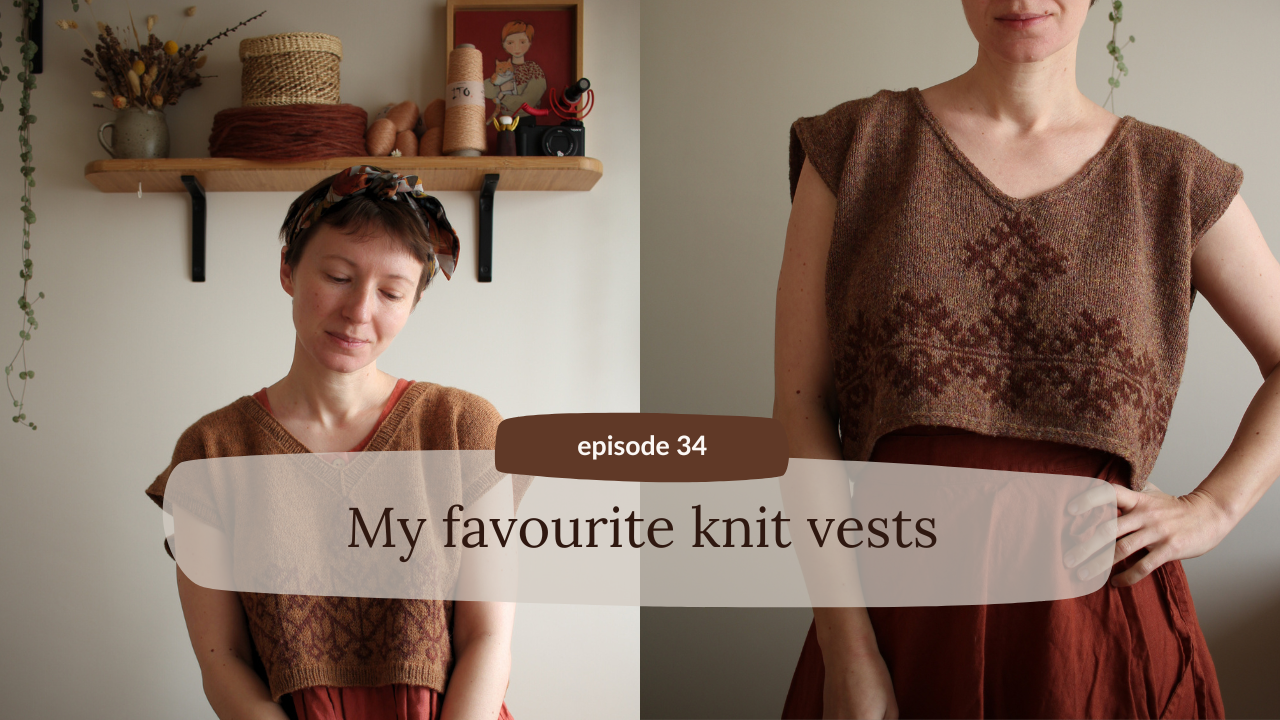 episode 34Talking about my two favourite knitted vests — Forest keys and Pavuk. Both boxy V-necks and coincidentally brown and with lots of colourwork.