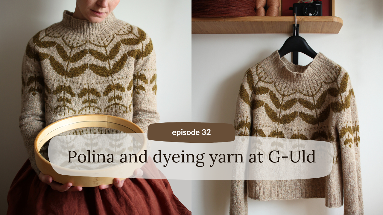 episode 32Featuring Polina pullover — inspiration, test knit process and working the colorwork with long floats. Attending a natural dyeing workshop in Denmark at G-Uld.