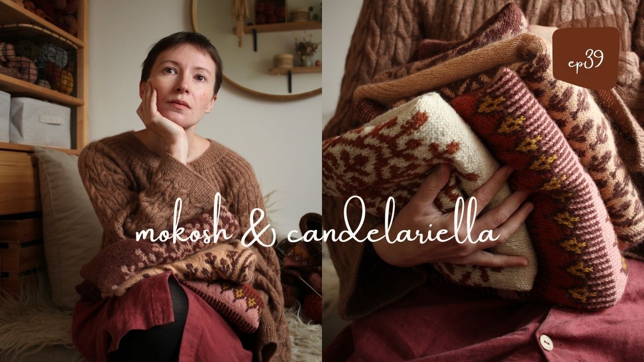 episode 39Cannot hide my excitement about the new Mokosh design and a second "destashing" sample I'm knitting. Also showing off my new Candelariella pullover.
