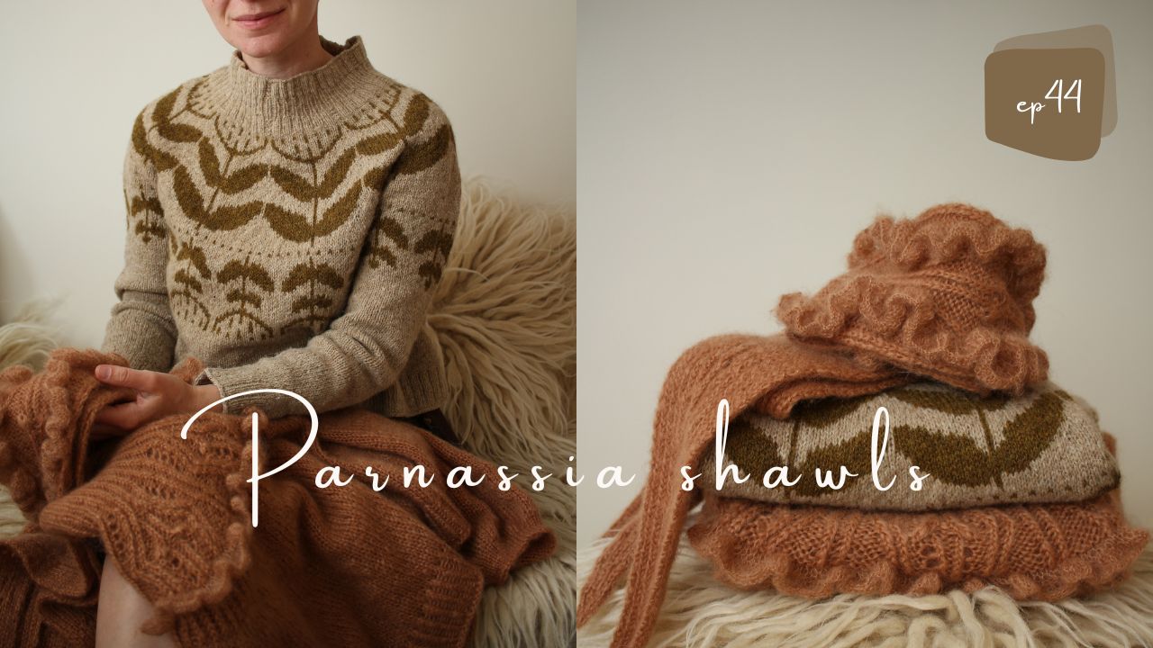 episode 44A quick catch up on my most recent projects: a newly finished second sample of chunky Parnassia pullover and two cute mini Parnassia shawls.