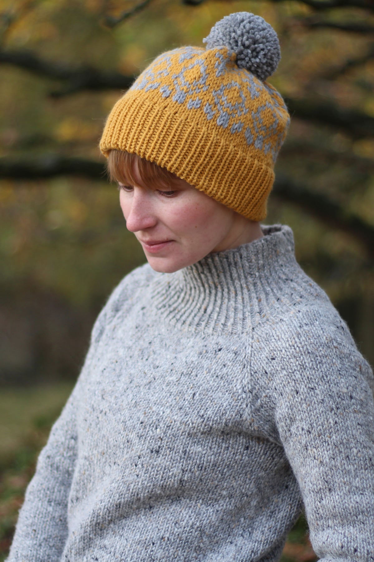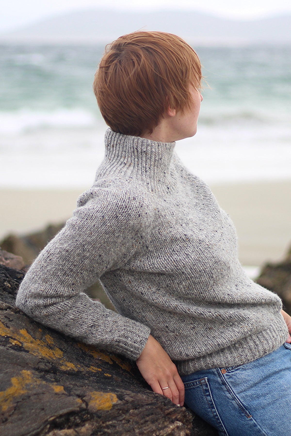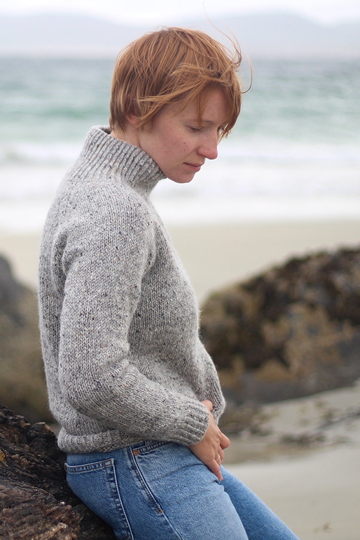 Donegal Pullover is the most simple raglan pullover with a wide standing mock neck. The garment is worked top down in a round with a few short rows shaping the neck and gradual increases along the raglan lines. This could easily be your first pullover!