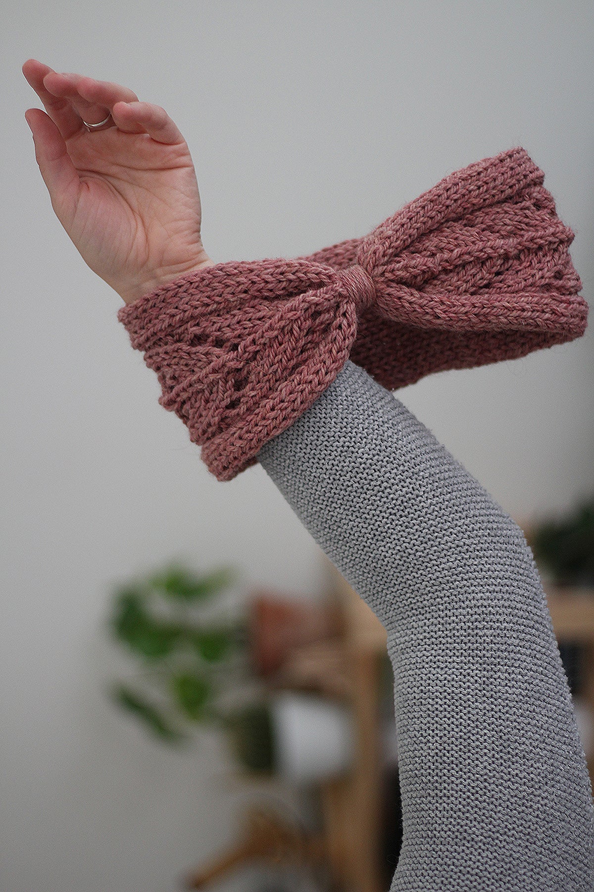 Foliage Headband is designed for all the romantic souls out there. It is a double layered reversible headband, knit seamless in a round with a simple yet beautiful leafy lace pattern on one of the sides.