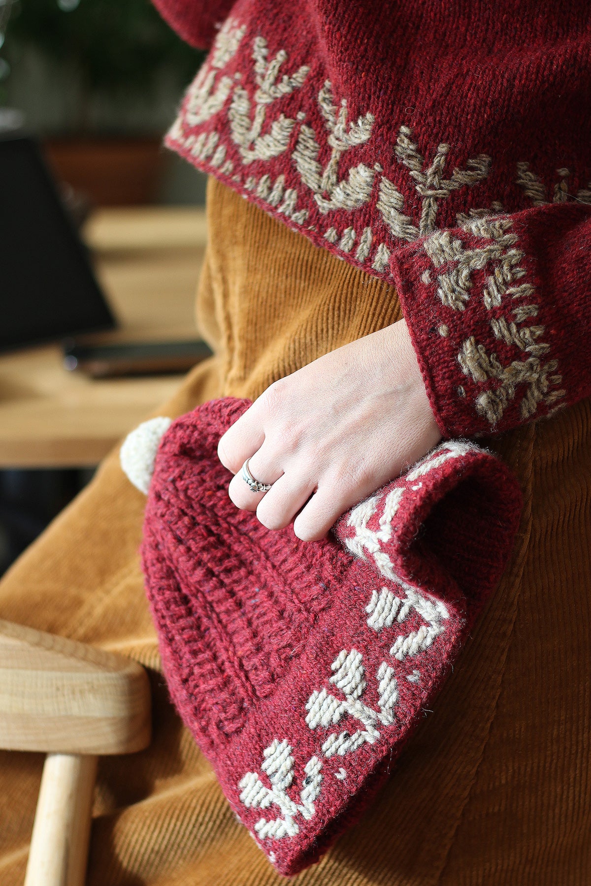 Note, I recommend to use a heavier cc yarn to have more texture in the colourwork; choose the yarn that felts well for the floats to look their best.