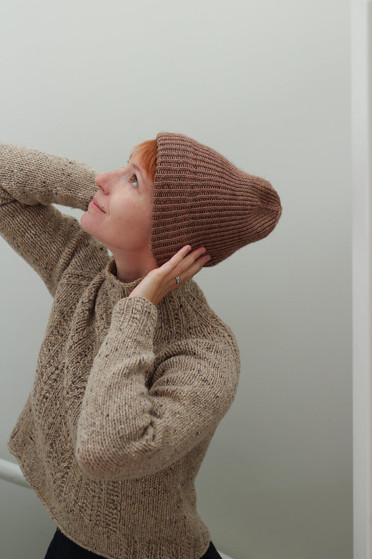 The Leipziger hat is knitted seamless in the round from the bottom up with alternating twisted knit and purl stitches. Simple, elegant, classic hat, that could be worn slouchy as well as a cap with folding edge and is double faced.