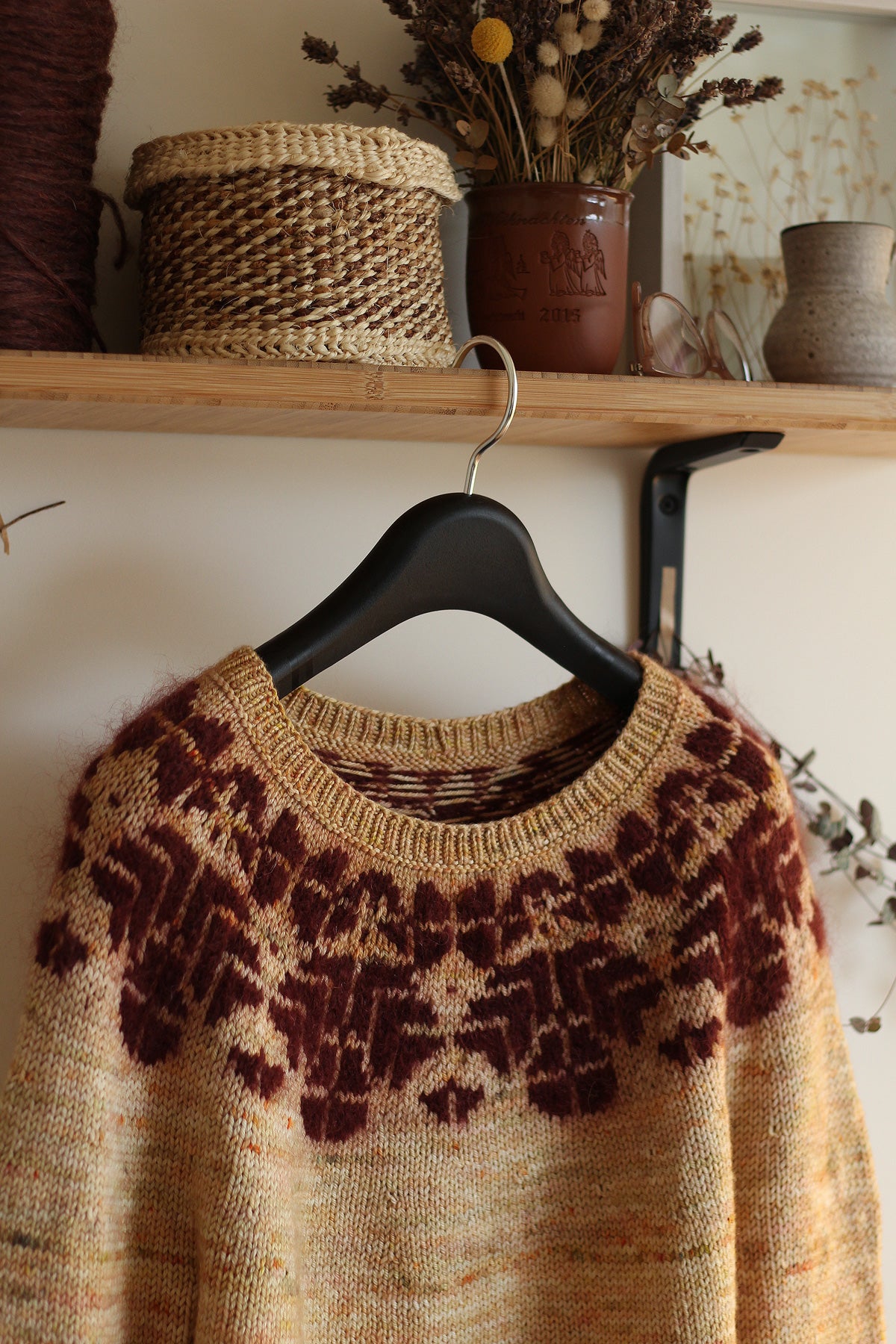 ∙ 20 sts & 26 rows in 10 cm (4 in) measured over stockinette stitch worked in the round after blocking on 4.0 mm (US 6), same gauge for the colourwork sections;