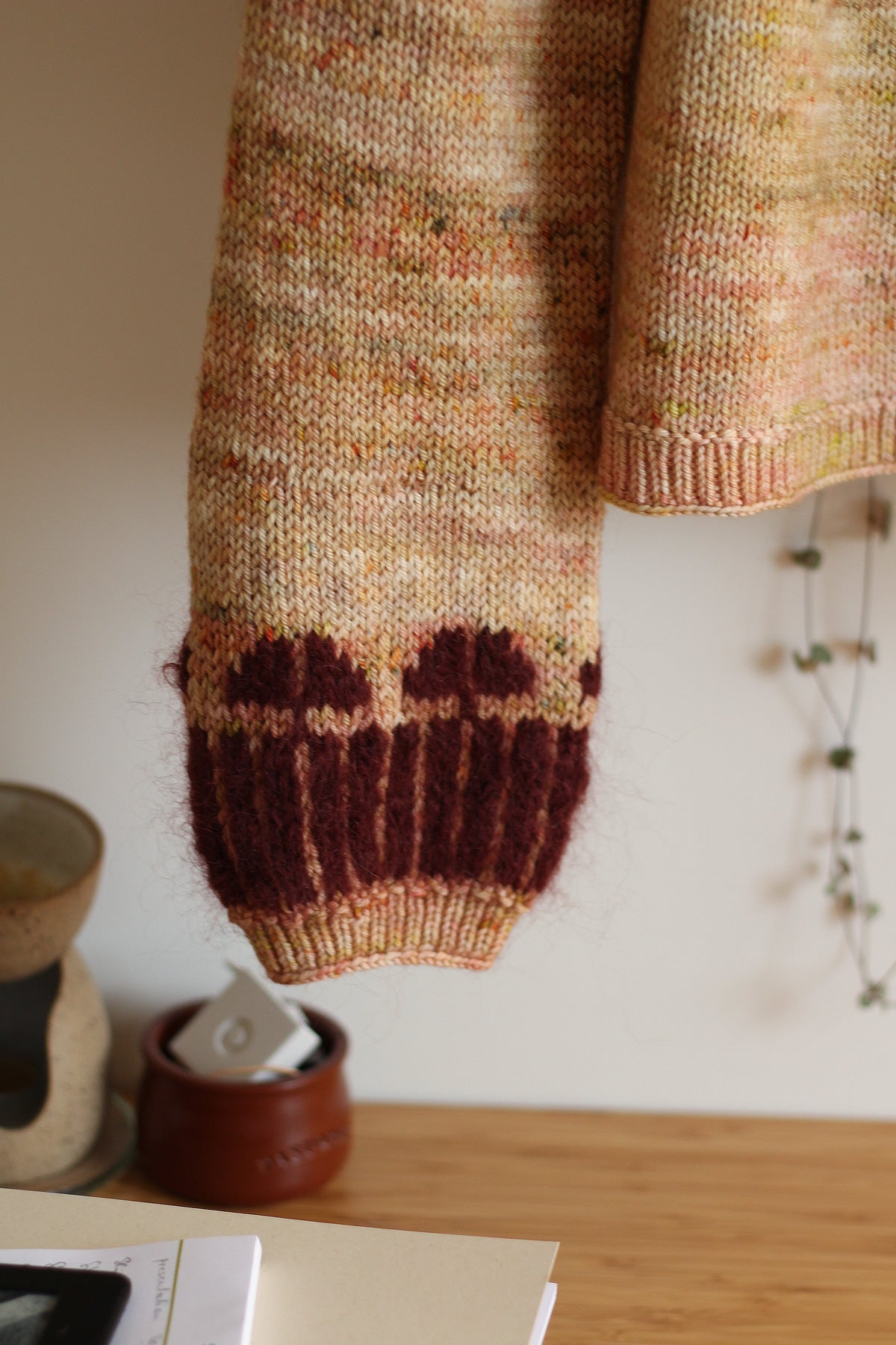 Imagine the tales an orchard might share. Michelle of Kokon yarn dyed these colourways inspired by my photo of a cherry tree orchard, full of greens and pinks and yellows, with spring in every drop of the dye. I planted beautiful flowers and a ginkgo tree in her orchard.