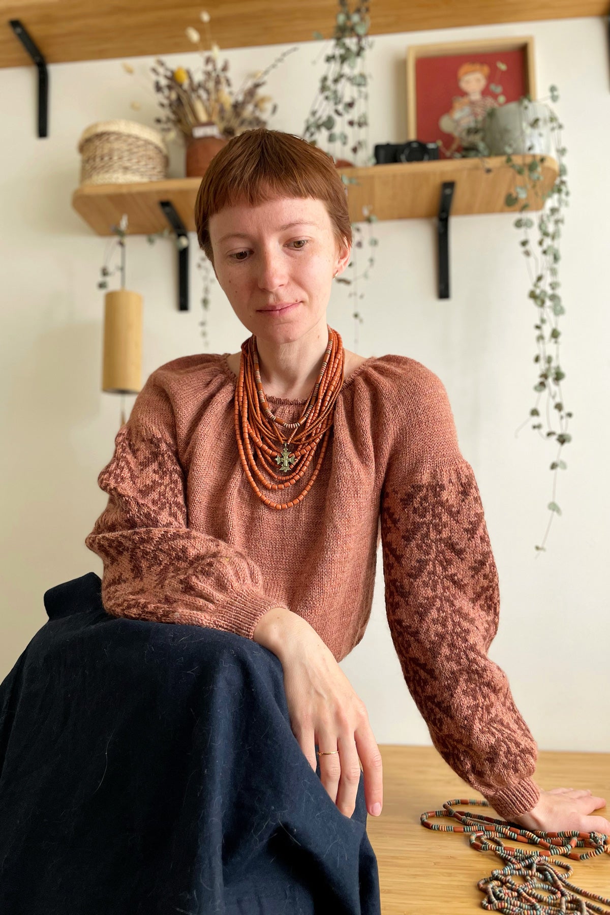 “Ornata” from Latin means “covered with ornaments” and I think the name suits this design very well. The design is very much inspired by traditional Ukrainian embroidered blouses, in which most of the embroidery is done on the sleeves. It might not be an everyday garment, but definitely a special one, especially for those of us coming from Eastern Europe.