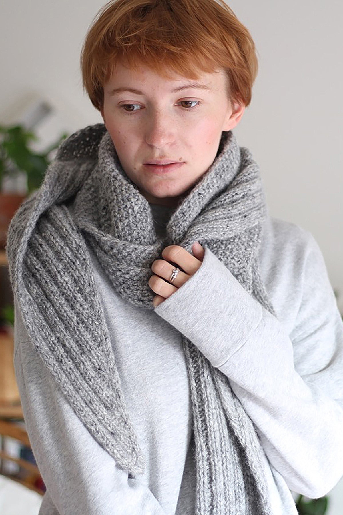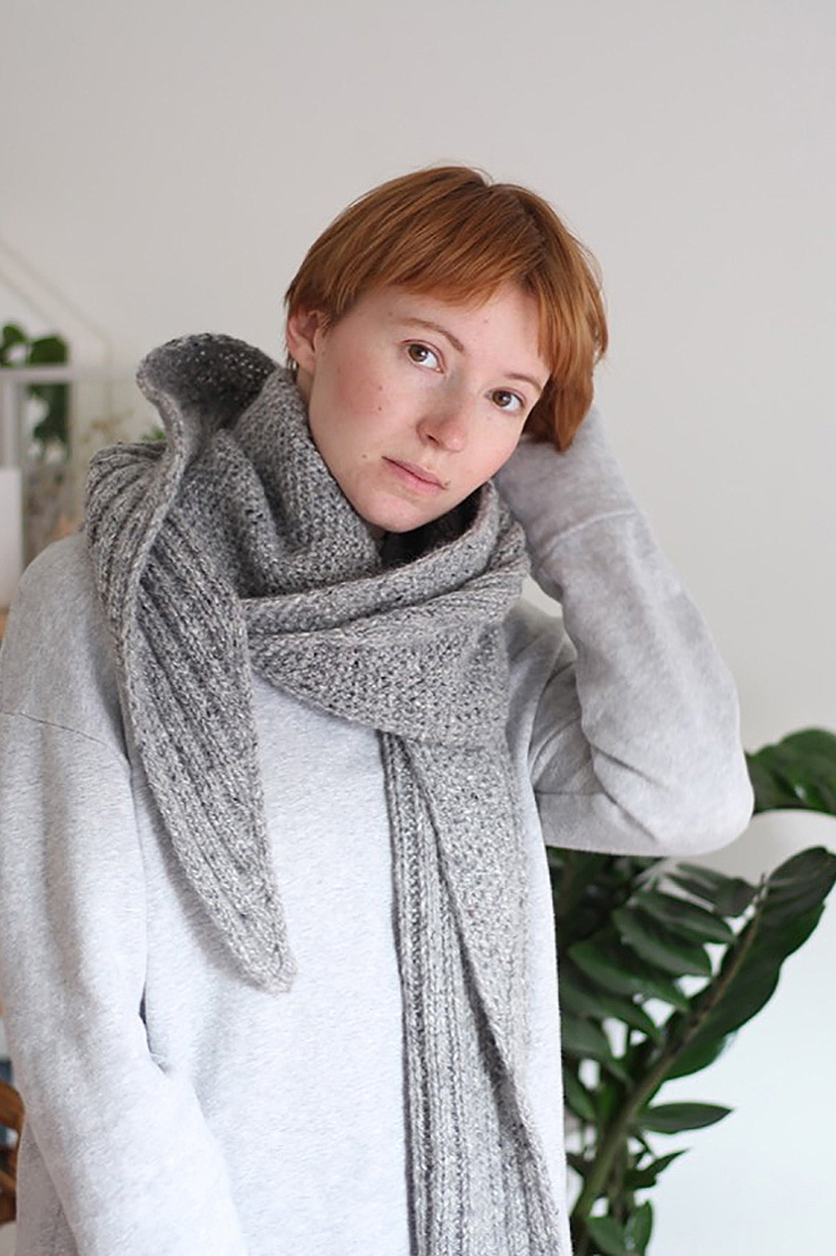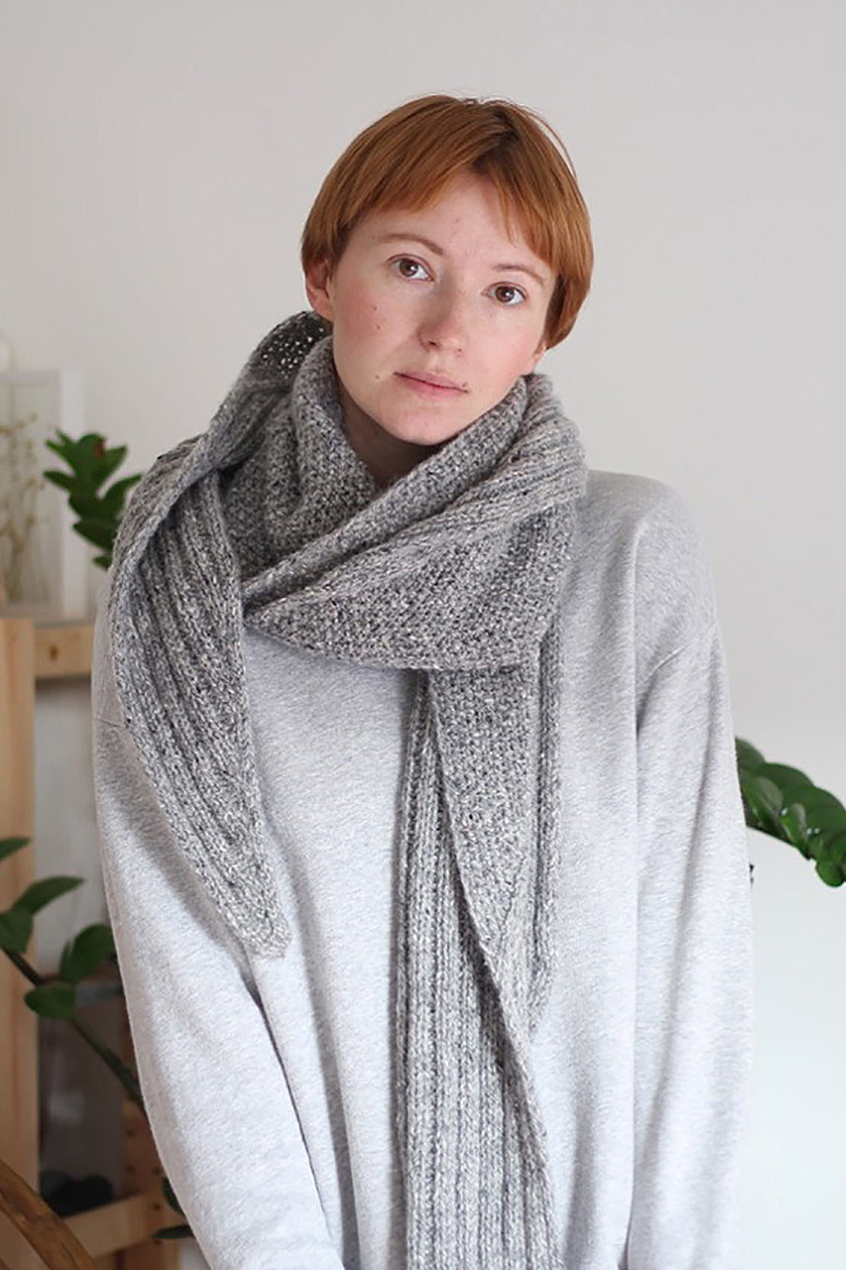 Final measurements of a blocked scarf: length 230 cm, width 32 cm.