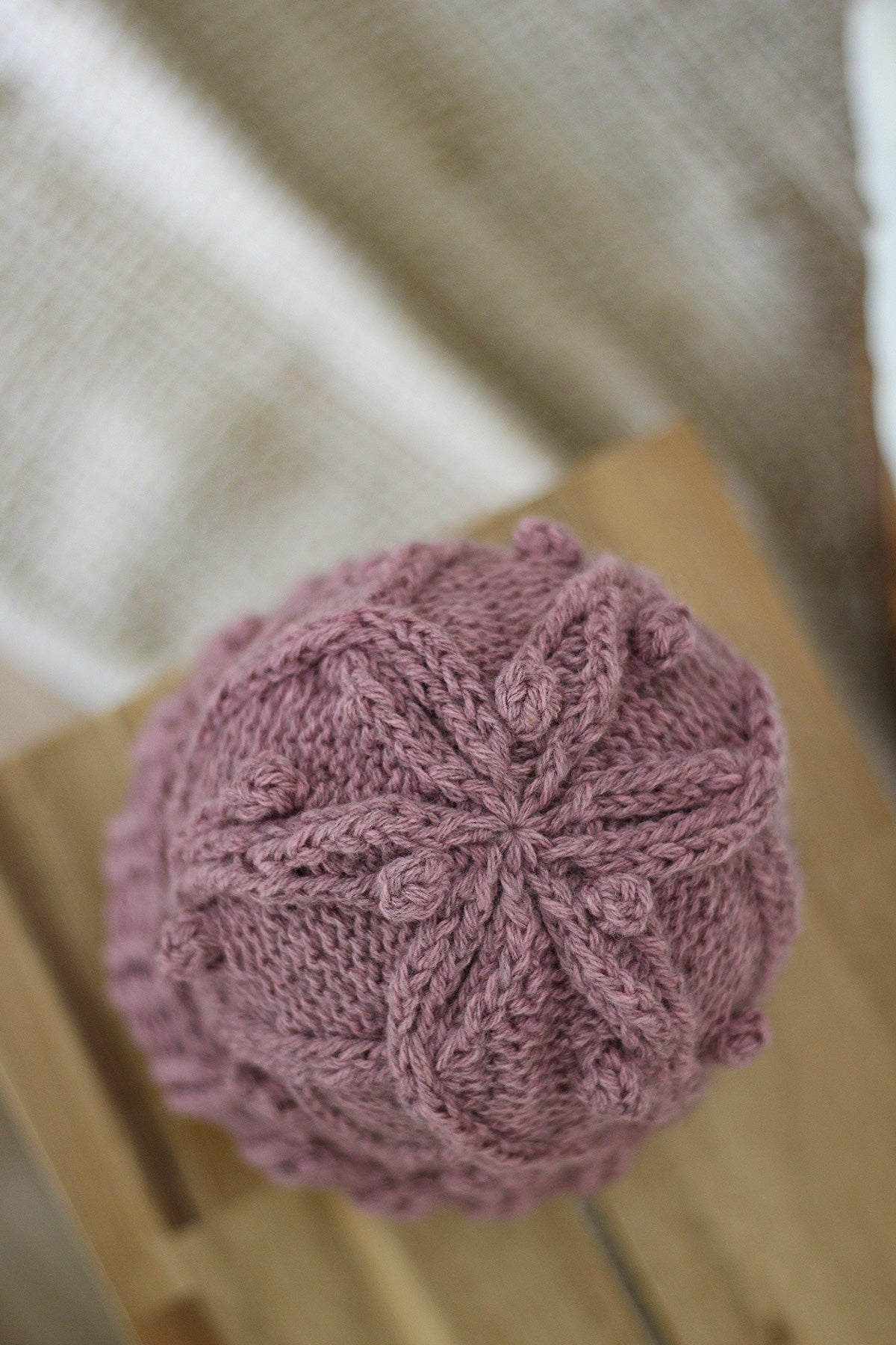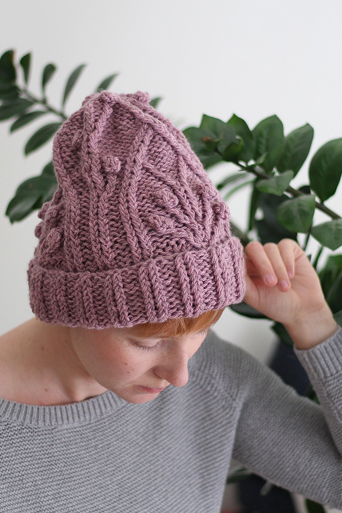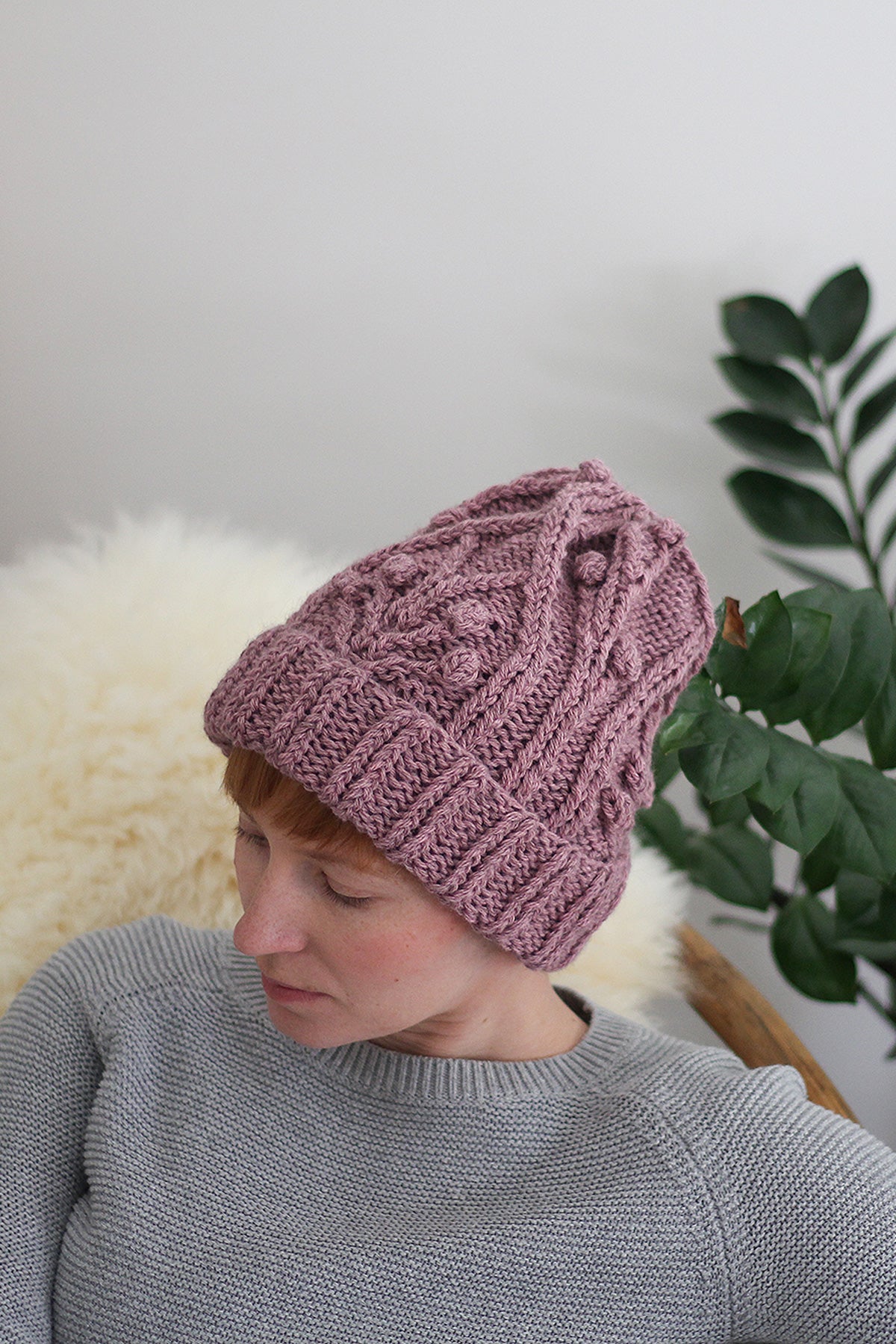 I wanted the design to be bright and playful. It turned out just the way I imagined! And the color inspired the name. It is a fast and fun project, combining simple yet elegant cables and bobbles.